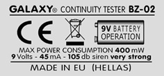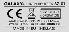 CONTINUITY TESTER ΒΟΜΒΗΤΗΣ (TZITZIKI) ΓΙΑ ΕΛΕΓΧΟ ΒΡΑΧΥΚΥΚΛΩΜΑΤΩΝ κ.λ.π. Continuity tester BZ-01 και BZ-02 GALAXY® Το προϊόν μας αυτό είναι σχεδιασμένο και κατασκευασμένο με μεγάλη επιμέλεια και με τα καλύτερα υλικά. Έχει δύο χρόνια εγγύηση αλλά θα σας εξυπηρετεί για πολλά περισσότερα χρόνια. Πιστεύουμε ότι είναι το καλύτερο στο είδος του. Τζιτζίκια ονομάζουν οι ηλεκτρολόγοι βομβητές που όταν τους τροφοδοτούν με τάση αυτοί βγάζουν έναν χαρακτηριστικό συνεχόμενο ήχο ΤΖΖΖΖ….. σαν το γνωστό καλοκαιρινό έντομο τζιτζίκι. Με έναν τέτοιο βομβητή, μια μπαταρία και δυο κομμάτια καλώδιο έφτιαχναν μια ιδιοκατασκευή που χρησιμοποιούσαν για να ξεχωρίσουν ένα ζευγάρι καλωδίων ανάμεσα από πολλά ζευγάρια. Συνέδεαν τα καλώδια της ιδιοκατασκευής στις άκρες ενός ζεύγους καλωδίων, πήγαιναν μετά στις άλλες άκρες των ζευγών και βραχυκυκλώνοντας διαδοχικά τα καλώδια του κάθε ζεύγους, όταν έφθαναν στο συνδεδεμένο με τον βομβητή αυτός ηχούσε και έτσι εύρισκαν το ζητούμενο ζεύγος. Τώρα εμείς για να διευκολύνουμε τους τεχνικούς στην εργασία του διαχωρισμού των άκρων των καλωδίων έχουμε κατασκευάσει μια σειρά εργαλείων και ηλεκτρονικών οργάνων από τα οποία τα πιο απλά και οικονομικά είναι το BZ-01 και το BZ-02 GALAXY®. Λειτουργούν με παρόμοιο τρόπο που λειτουργούσαν τα γνωστά τζιτζίκια αλλά έχουν πολύ καλύτερα τεχνικά χαρακτηριστικά και είναι και πολύ καλύτερης ποιότητας. Λειτουργούν με απλές μπαταρίες 9V και έχουν πολύ μικρή κατανάλωση καθώς και διακόπτη ON-OFF για να μην ενεργοποιούνται όταν δε θέλετε. Τα καλώδια τους είναι πολύ εύκαμπτα και μεγάλης αντοχής. Τα υλικά κατασκευής τους είναι όλα πολύ καλής ποιότητας όπως σε όλα τα προϊόντα GALAXY®.